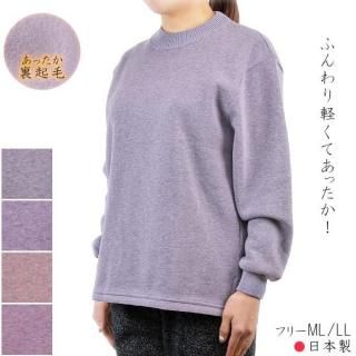 裏起毛トレーナー 長袖シャツ 無地 ML/LL 日本製 あったか シニア レディース