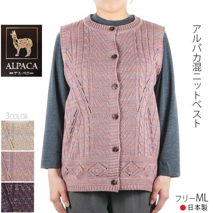 ニットベスト アルパカ混 丸首 フリーML ソフト あったか レディース 秋冬