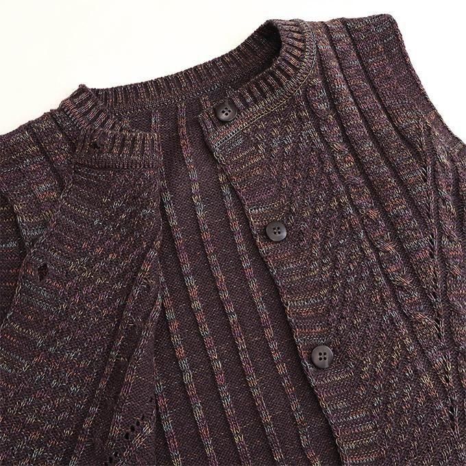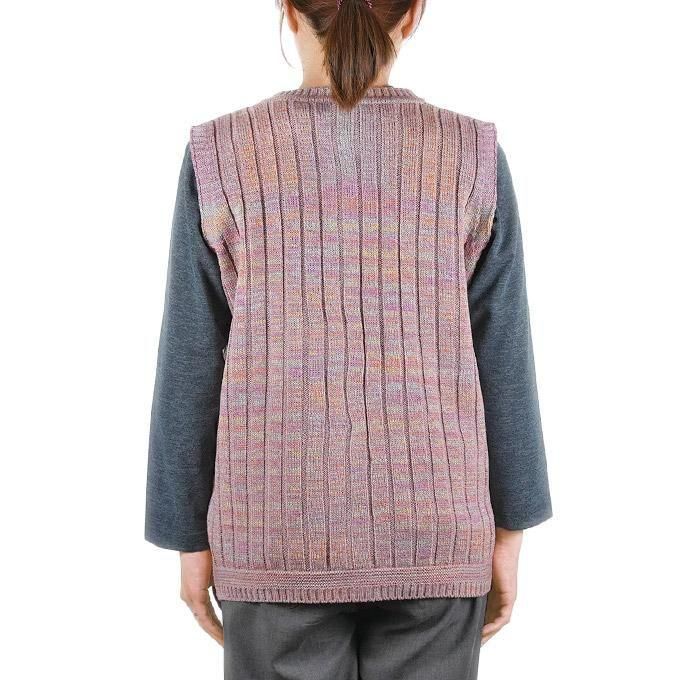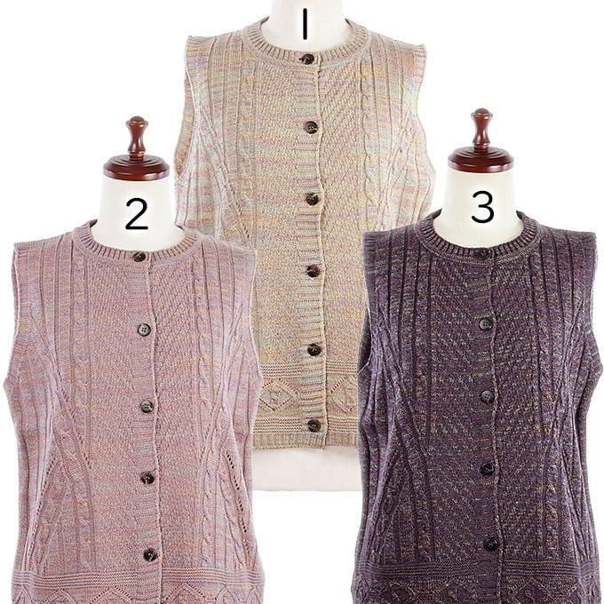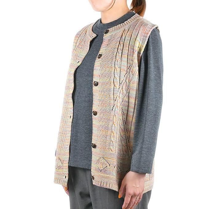 ミックスカラーの丸首レディースベスト。ソフトでしなやかな風合いのアクリル繊維とアルパカをブレンドした快適素材。秋冬ベストとして羽織るだけでも上品な印象。安心の日本製ベストはプレゼントにもおすすめです。