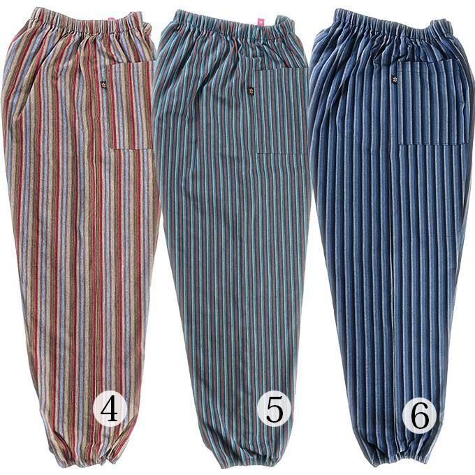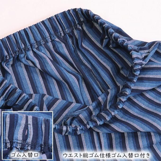 縞もんぺ 綿100% レディース かつお縞 お尻部分補強 ゴム入替口付 M/L/LL/3L 日本製 園芸 ガーデニング ワークパンツ