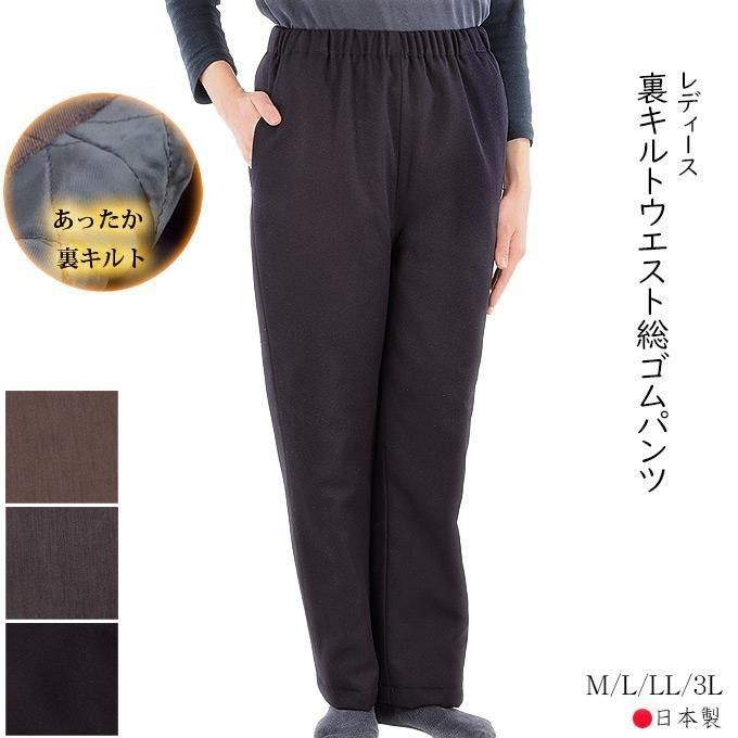 裏キルトスラックス ウエスト総ゴム レディース 防寒 パンツ M/L/LL/3L 日本製 秋冬