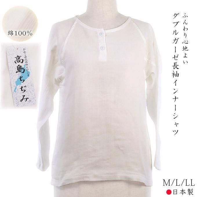ダブルガーゼ長袖インナーシャツ レディース 綿100% 高島ちぢみ 日本製 M/L/LL